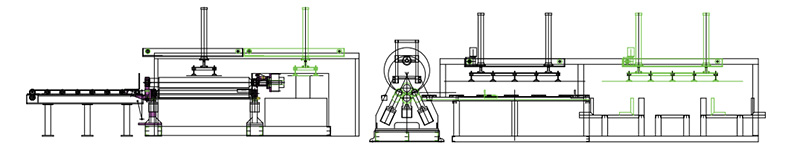 五、自動(dòng)出料裝置在卷制完成后由無(wú)桿氣缸或伺服電機(jī)將工件推出,由電動(dòng)V形運(yùn)送架將工件運(yùn)送到下道工序。